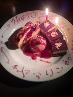 普通に飲み会をしていたら、最後のデザートのとき、とびきり陽気なバースデーソングがかかって、店員さんがにこにこしながらケーキを持って階段を上がってきました。